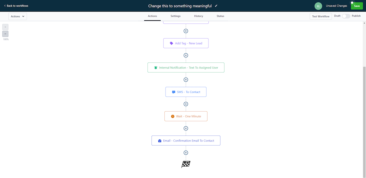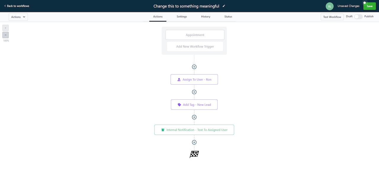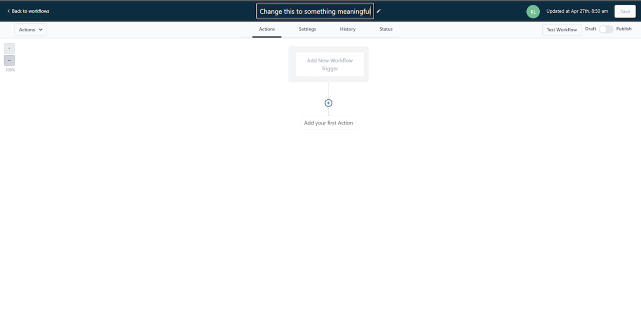 The first step when you are creating any workflow is to rename it and save it.